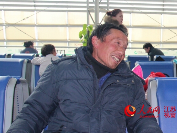 人民網(wǎng)南通2月10日電(記者王繼亮)大年初三上午10點(diǎn)多,南通火車(chē)站候車(chē)大廳,江蘇淮安籍菜農(nóng)曾善兵正在等候11點(diǎn)58分開(kāi)往淮安的列車(chē)。他快一年沒(méi)有回老家了,錯(cuò)過(guò)與家人共進(jìn)年夜飯的他,心早已飛回了家里。這一年,他們靠著辛勤勞作凈賺5萬(wàn)元,卻還是舍不得花100元坐長(zhǎng)途汽車(chē)。他的新年愿望是日子越過(guò)越紅火,將來(lái)把孫子培養(yǎng)成大學(xué)生,還打算在城里買(mǎi)房。