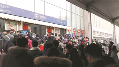 西軍離開徐州的車次,是在中午十二時許。此時,車站上的旅客已越聚越多。候車大廳入口處排起四列幾十米長的隊(duì)伍,記者跟隨旅客一同進(jìn)站,大約要用10分鐘。他們,并不用太擔(dān)心買不到車票。徐州火車站客運(yùn)車間黨總支書記朱建軍告訴記者,今年春運(yùn),他們站始發(fā)的臨客列車就有138列,可以滿足出行需求。