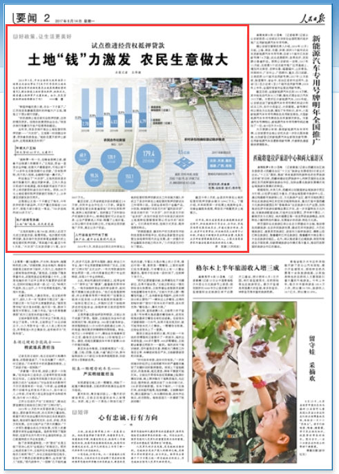 人民日?qǐng)?bào):江蘇推進(jìn)經(jīng)營(yíng)權(quán)抵押貸款 農(nóng)戶兩天貸到60萬(wàn)