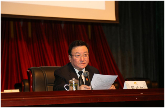 徐州市國土資源局黨組成員,邳州市國土資源局黨委書記、局長邵曉旭在會上作《土地與農(nóng)民》專題講座