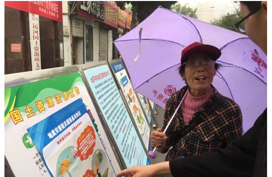 咨詢(xún)臺(tái)工作人員向群眾講解國(guó)土資源法律法規(guī)知識(shí)