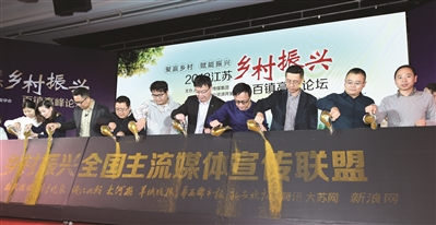 在此背景下,由揚子晚報攜手齊魯晚報、錢江晚報、大河報、華西都市報、羊城晚報、新安晚報、新民晚報以及騰訊網(wǎng)、新浪網(wǎng)共同成立的“鄉(xiāng)村振興全國主流媒體宣傳聯(lián)盟”借本次論壇的機會舉行了隆重的成立儀式。
