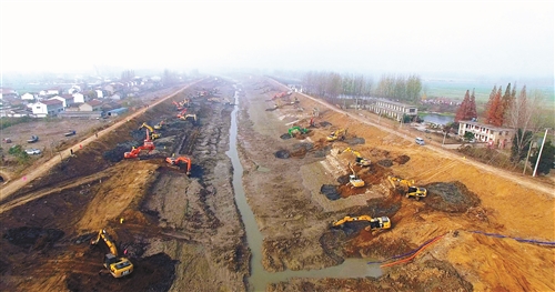 在鄭集河河道兩側(cè),工程機(jī)械正在緊張作業(yè)。 徐州日?qǐng)?bào)全媒體記者 劉作霖 通訊員 市水宣 攝