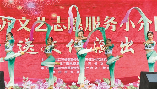 當天,作為“我們的中國夢”——文化進萬家活動的暖場活動,江蘇省文聯(lián)文藝志愿者服務(wù)隊來到這里,為大家送上精彩的文藝節(jié)目。大吳街道建平社區(qū)村民張久榮昨天聽了賈汪電視臺的預(yù)告,今天一大早就來到了演出現(xiàn)場。她說,現(xiàn)在日子好了,大家的心態(tài)也都年輕了,我們農(nóng)村文化活動一點也不比城里人少,平時大家就在建平公園跳跳廣場舞,在社區(qū)文化站還能打牌、唱歌。
