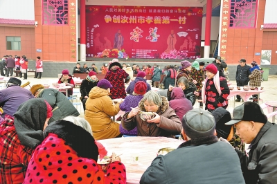這是村里的年輕人為了多盡孝心而特意為老人們準備的餃子宴。糞堆趙村黨支部書記潘進偉說,這是該村第一次舉辦餃子宴活動,以后每月的農(nóng)歷初九這一天都要舉辦,要讓餃子宴成為糞堆趙村打造“汝州孝善第一村”的重要平臺。