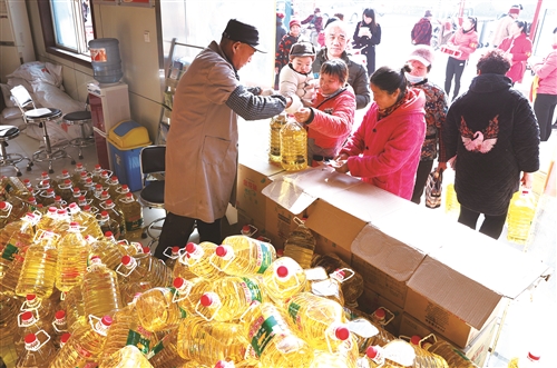 1月23日,村民們在官莊村支兩委的組織下,慰問村里軍烈屬、傷殘軍人、五保戶、困難戶等困難群體。