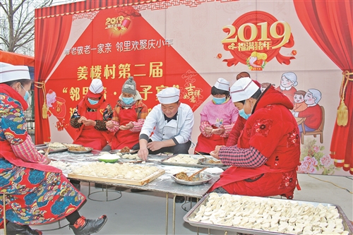 徐州日報(bào)訊(全媒體記者 孟祥 通訊員 云祖軒)過年的餃子“包”出尊老敬老的好風(fēng)氣,也讓姜樓村的老人們吃出了幸福綿長的好滋味。1月29日一大早,云龍區(qū)潘塘街道姜樓村文化小廣場張燈結(jié)彩、鑼鼓喧天,村里的“娘子軍”們忙著和面、調(diào)餡、搟皮、包餃子,老人們一邊觀看著腰鼓隊(duì)表演,一邊拉呱嘮著家常……熱騰騰的餃子上桌,村里200多位70歲以上老人、五保戶、低保戶等歡聚一堂,品嘗著過年的滋味和團(tuán)聚的幸福。 活動(dòng)當(dāng)天,姜樓村還開展了一系列尊老敬老活動(dòng),云龍區(qū)的小小書法家們?yōu)槔先藗兯蜕嫌H手寫的春聯(lián),醫(yī)院來到家門口為老人們開展眼科疾病免費(fèi)篩查。有的老人腿腳不方便,村里就組織志愿者將餃子送上門。姜樓村黨支部書記潘剛告訴記者,姜樓村常住人口2580人,其中70歲以上的有221人,為弘揚(yáng)傳統(tǒng)文化,關(guān)愛關(guān)懷老年人群,今年是姜樓村舉辦的第二屆餃子宴,通過舉辦這樣的活動(dòng),增加了社區(qū)溫馨氛圍,營造了歡快的跨年氣氛。 |