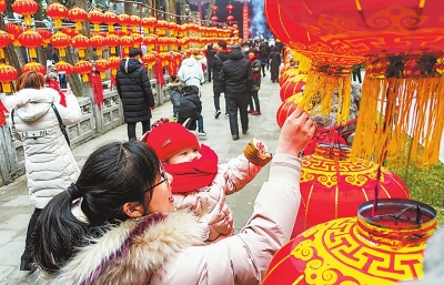 2月9日,游客在洛陽關(guān)林春節(jié)民俗廟會上游玩。春節(jié)期間,當?shù)嘏e辦了精彩紛呈的民俗廟會活動。黃政偉攝