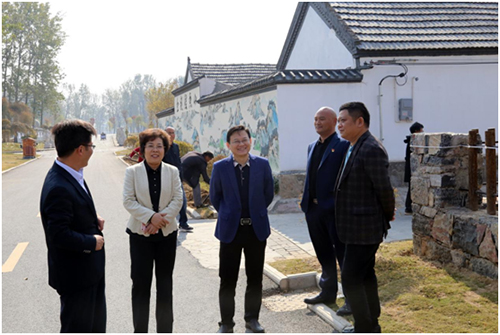 睢寧縣國土資源局局長張敏向邳州市國土資源局黨委副書記曾源介紹王集鎮(zhèn)鯉魚山莊公共空間治理和特色田園鄉(xiāng)村創(chuàng)建工作。