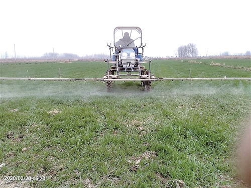▲沛縣抓住天氣晴好的有利時機,組織各類農(nóng)業(yè)機械進田地噴藥施肥。
