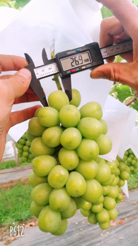 “減少數(shù)量只是葡萄‘計劃生育的’一部分,還要下狠心疏枝、疏花、疏果。葡萄一般畝產(chǎn)3000公斤,我的葡萄畝產(chǎn)量控制在1500公斤以內(nèi)。種出好品質(zhì)的水果,疏果是關(guān)鍵,一串葡萄留50——60粒,我們還要對葡萄粒進行直徑測試,對病果、弱果及時疏果,達到高端葡萄品質(zhì),成熟后一串保證在600——750克重,外形也比較好看。”楊建話語種經(jīng)常提及“品質(zhì)”兩字。
