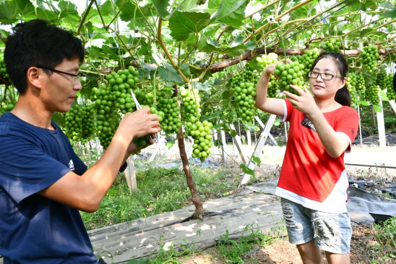 在鄉(xiāng)村振興的大潮中,有一批被稱為“新農(nóng)人”的年輕人,他們受過高等教育,卻放棄都市繁華,扎根農(nóng)村投資創(chuàng)業(yè),不僅自己致富了,還帶動周圍群眾發(fā)家致富。在徐州市銅山區(qū)茅村鎮(zhèn)就有在這么一對夫妻,男的叫楊建,妻子叫徐嬌,兩人均是南京林業(yè)大學(xué)研究生畢業(yè),他們毅然放棄大城市高薪工作,來茅村鎮(zhèn)梅莊村投資建起自己的“喬園葡萄采摘園”,利用自己所學(xué)專業(yè)“土里掘金”帶民富。
