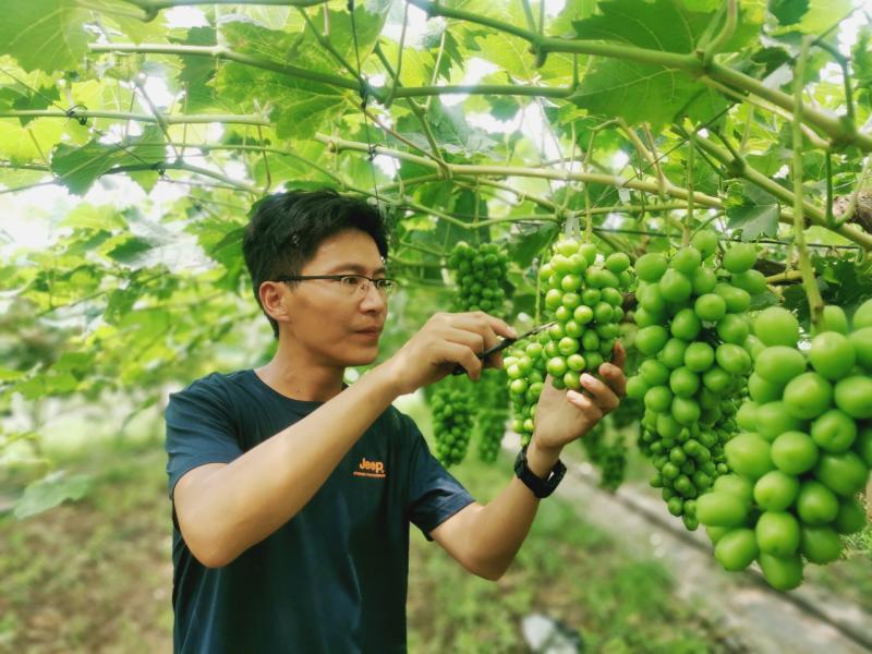 來到徐州后,楊建、徐嬌對當(dāng)?shù)仄咸旬a(chǎn)業(yè)進行細致考察,他們發(fā)現(xiàn),當(dāng)?shù)仄咸讯鄶?shù)還是一般的品種,普通葡萄一公斤最多也就10元左右收益。隨著徐州經(jīng)濟飛速發(fā)展,對優(yōu)質(zhì)葡萄的消費需求與日俱增,當(dāng)?shù)貎?yōu)質(zhì)葡萄的種植量卻遠遠滿足不了這一“供不應(yīng)求”的市場?闯隽诉@一市場空缺的楊建決心要種植出高品質(zhì)的葡萄,打造徐州區(qū)域性的精品高端葡萄品牌。通過多次細致考察,楊建最終選取了陽光玫瑰、妮娜皇后、浪漫紅顏等最新具有突出農(nóng)藝性狀的新一代葡萄品種種植。