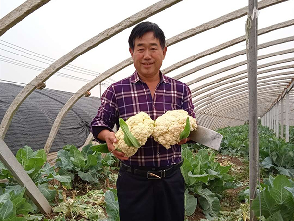 上半年種西瓜,下半年田峰就種芹菜、花菜,一年下來(lái),一畝地收入一萬(wàn)元左右。就這樣,靠種大棚菜,田峰在村里率先富了起來(lái)。