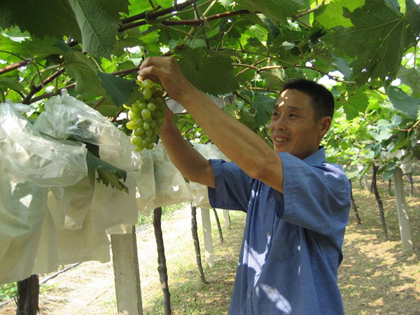 為了提高市場競爭力,繆世宏擴種了60畝地,種植了多個葡萄品種,并為他的葡萄產品注冊了“宮品”牌商標,在追肥、用藥、選枝、選果等方面嚴格按照國家無公害葡萄的各項指標去認真種植和操作,順利通過了國家檢驗檢疫總局的驗收,獲得了“無公害農產品”的稱號。但繆世宏并沒有滿足,為了追求果品更好的品質,他嚴控產量,對葡萄實行“計劃生育”,把畝產量控制在1500公斤以內,每串控制在一斤二兩到一斤半之間。以產量換取更高的品質,這一切,為進入高檔精品水果市場拿下了一張門票,目前他種植的葡萄一公斤平均價格在30—40元。