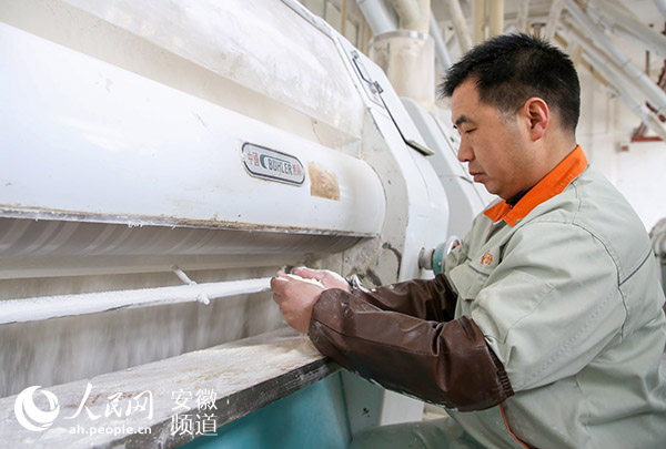 金鴿面業(yè)員工正在查看面粉加工情況。人民網(wǎng) 王銳攝