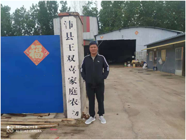 2015年,王雙喜開始由農(nóng)機(jī)服務(wù)轉(zhuǎn)向成立自己的農(nóng)場(chǎng)。他在沛縣漢興街道許塘坊社區(qū)流轉(zhuǎn)土地750畝,成立了“王雙喜家庭農(nóng)場(chǎng)”,推廣種植優(yōu)質(zhì)小麥、水稻。近幾年來,他購(gòu)置了旋耕機(jī)、拖拉機(jī)、收割機(jī)、烘干機(jī)、噴灑農(nóng)藥無(wú)人機(jī)等多種型號(hào)農(nóng)業(yè)機(jī)械10多個(gè)臺(tái)套。2015年5月,他注冊(cè)了“雙喜家庭農(nóng)場(chǎng)”,先后新建了1200平方米的機(jī)庫(kù)棚,安裝了6臺(tái)糧食烘干機(jī)。機(jī)具多了,需要的人多了,農(nóng)忙季節(jié),他安排了20余名農(nóng)民來農(nóng)場(chǎng)就業(yè),由于他辦的農(nóng)場(chǎng)農(nóng)業(yè)機(jī)械化程度高,生產(chǎn)的稻米、小麥,很受當(dāng)?shù)丶庸て髽I(yè)歡迎,早早就被訂購(gòu)一空。