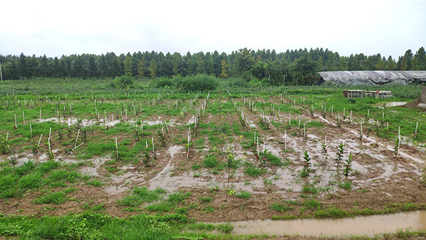 日前,降雨剛停,十房村的兩位村干部就拿著鐵鍬來到村里經(jīng)營的蘋果自采園里,排出積水,防止果樹受淹。記者了解到,這片蘋果園是去年流轉(zhuǎn)村民土地后栽種的,三年后將會給村里帶來可觀的收入。