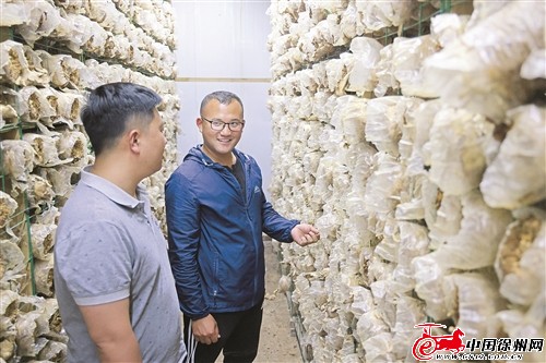 王傳亞(右)參觀杏鮑菇種植場(chǎng)。本報(bào)記者 白雪 攝