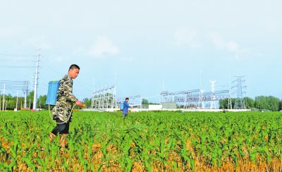 6月28日,柘城縣陳青集鎮(zhèn)路莊村村民在玉米田里噴灑農(nóng)藥,加強(qiáng)玉米田間管理,為秋糧豐收打基礎(chǔ)。張子斌 攝