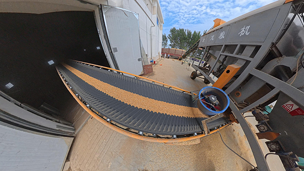 傳送機(jī)正在往糧庫(kù)輸送小麥。人民網(wǎng)記者 王天樂攝