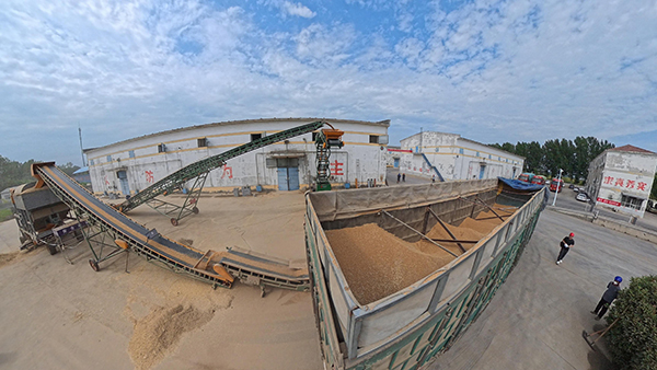 運(yùn)糧車正在卸糧。人民網(wǎng)記者 王天樂攝