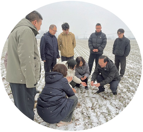 3月1日,河北省農(nóng)技專家團(tuán)隊(duì)在廊坊市固安縣雪地里調(diào)研小麥生長(zhǎng)情況。 資料圖