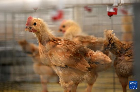 4月9日拍攝的西北農(nóng)林科技大學(xué)陜西武功家禽科技小院標(biāo)準(zhǔn)化育雛舍里用于家禽精準(zhǔn)營養(yǎng)評估試驗(yàn)的黃羽雛雞。