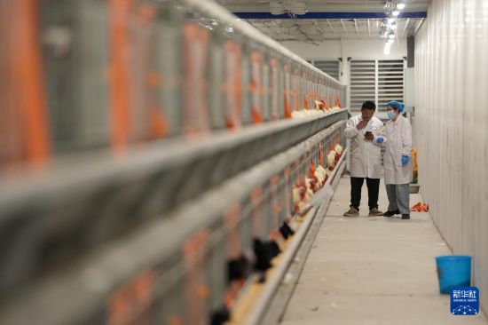 4月9日,西北農(nóng)林科技大學(xué)博士研究生周雨昕(右)和工作人員在陜西武功家禽科技小院養(yǎng)殖區(qū)進(jìn)行蛋雞人工受精前的數(shù)據(jù)核對。