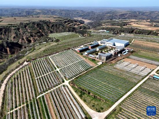 4月10日拍攝的延安洛川蘋果試驗(yàn)示范站科技小院(無人機(jī)照片)。