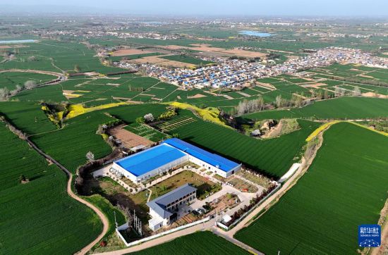 4月8日拍攝的陜西隴縣小麥科技小院(無人機(jī)照片)。