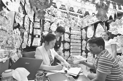 2015年7月17日,浙江義烏市國際商貿(mào)城,來自印度的客商正訂購圣誕裝飾用品。