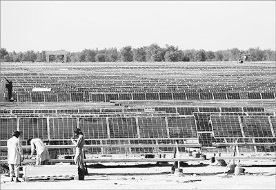 8月28日,在巴基斯坦旁遮普省的巴哈瓦爾布爾地區(qū),當(dāng)?shù)毓と嗽谥信d能源有限公司投資建設(shè)的900兆瓦光伏地面電站安裝太陽能電池板。該電站項(xiàng)目總投資額逾15億美元,是中巴經(jīng)濟(jì)走廊的優(yōu)先實(shí)施項(xiàng)目之一,中巴經(jīng)濟(jì)走廊是“一帶一路”倡議的重要組成部分。