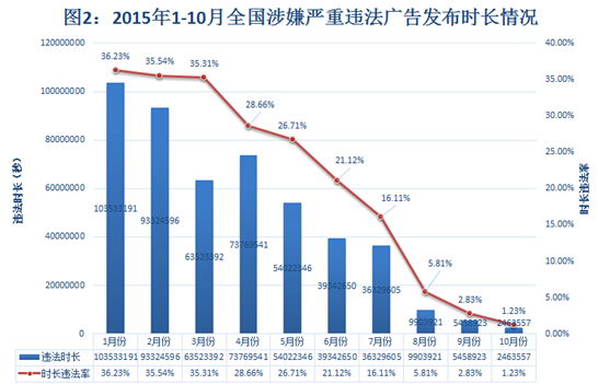 20151-10月全國(guó)廣告監(jiān)測(cè)綜合違法率走勢(shì)