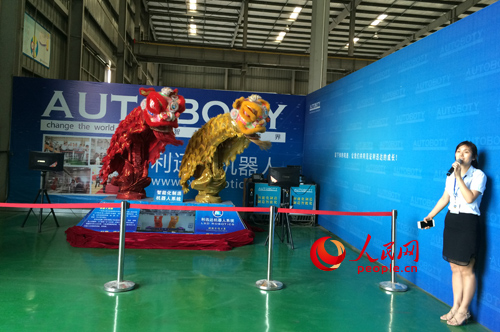 利迅達機器人系統(tǒng)公司制造的機器舞獅(人民網(wǎng)李海霞攝)