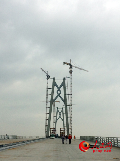 正在建設(shè)中的港珠澳大橋CBO3標橋面(人民網(wǎng)李海霞攝)