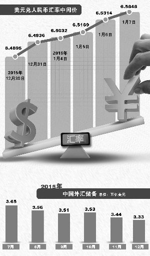 1月6日,中國外匯交易中心發(fā)布人民幣兌美元中間價(jià)為6.5314,是在前一日人民幣即期匯率收盤(23:30收?qǐng)?bào)6.5157)實(shí)現(xiàn)回漲的前提下再度明顯下調(diào),下調(diào)幅度達(dá)145個(gè)基點(diǎn),創(chuàng)2011年4月以來新低。中間價(jià)的低開,直接導(dǎo)致當(dāng)日在岸人民幣16:30的收盤價(jià)較1月5日下跌近400個(gè)基點(diǎn),為2011年3月以來最低水平。離岸人民幣當(dāng)日最低跌至6.7321,跌幅超1%,創(chuàng)2009年以來新低。在6日中間價(jià)大幅下調(diào)后,7日中間價(jià)繼續(xù)走低,報(bào)6.5646,較前一日中間價(jià)的跌幅達(dá)0.51%。