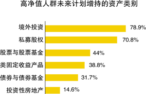 隨著全球大類資產(chǎn)價格的動蕩與分化,雖然目前將海外投資作為主要配置資產(chǎn)的高凈值人士占比只有12%,但由于海外資產(chǎn)尤其是美元資產(chǎn)的吸引力,以及國內(nèi)符合收益要求資產(chǎn)的減少,更主要是出于分散風(fēng)險的目的,近八成的高凈值人士計劃在未來增加海外投資的配置比例。高凈值人群海外資產(chǎn)配置青睞權(quán)益投資,中國香港市場和美國市場是首選。