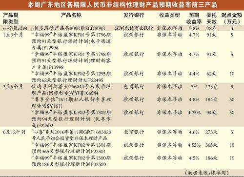 據銀率網統(tǒng)計顯示,上周廣東地區(qū)發(fā)行的人民幣非結構性銀行理財產品平均預期收益率小幅下跌,僅為3.91%。