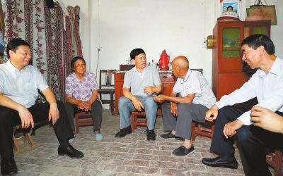 謝伏瞻十分牽掛滑縣的脫貧工作,他首先來到慈周寨鎮(zhèn)北李莊村,先后走進貧困戶王天敬、李守芳、聶化敬家中看望慰問。每到一家,謝伏瞻都認真察看飲食起居狀況,與大家圍坐在一起,關(guān)切地詢問收入來源、就業(yè)門路、政策保障等基本情況。當(dāng)看到這幾家貧困戶在該縣“六改一增”的幫扶措施下,院落干凈整潔,生活設(shè)施齊全,居住環(huán)境得到改善,住房安全有了保障,謝伏瞻深感欣慰。了解到有的貧困戶靠理發(fā)手藝、剪花務(wù)工增加了收入,謝伏瞻鼓勵說,擺脫貧困既要靠政府扶持,還要靠自身努力、自力更生,誰扶都不如自己扶,政府幫一點、自己掙一點,大家共同努力,一定能夠?qū)崿F(xiàn)脫貧。謝伏瞻還來到村衛(wèi)生室,詢問收費標(biāo)準(zhǔn)、藥物價格等情況,叮囑要為村民健康做好保障,防止村民因病致貧、因病返貧。