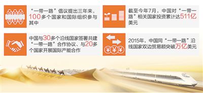 “一帶一路”倡議提出三年來,100多個(gè)國家和國際組織參與其中,中國與30多個(gè)沿線國家簽署共建“一帶一路”合作協(xié)議、與20多個(gè)國家開展國際產(chǎn)能合作,以亞投行、絲路基金為代表的金融合作不斷深化,一批有影響力的標(biāo)志性項(xiàng)目逐步落地。截至今年7月,中國對“一帶一路”相關(guān)國家的投資累計(jì)達(dá)511億美元。2015年,中國同“一帶一路”沿線國家雙邊貿(mào)易額突破萬億美元。從無到有、由點(diǎn)及面,“一帶一路”海陸統(tǒng)籌、東西互濟(jì)、面向全球的開放新格局漸次鋪開,建設(shè)速度和成果超出預(yù)期。