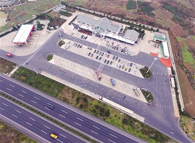 圖為空中俯瞰滬陜高速儀征服務(wù)區(qū)。 新華報業(yè)視覺中心記者 萬程鵬攝
