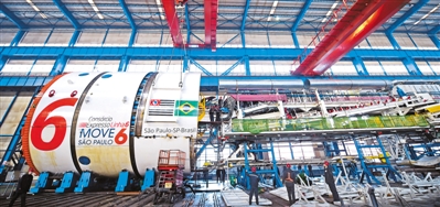 2016年1月28日,在沈陽北方重工集團(tuán),工人對(duì)準(zhǔn)備出口到巴西圣保羅的盾構(gòu)機(jī)進(jìn)行拆機(jī)和運(yùn)輸工作。