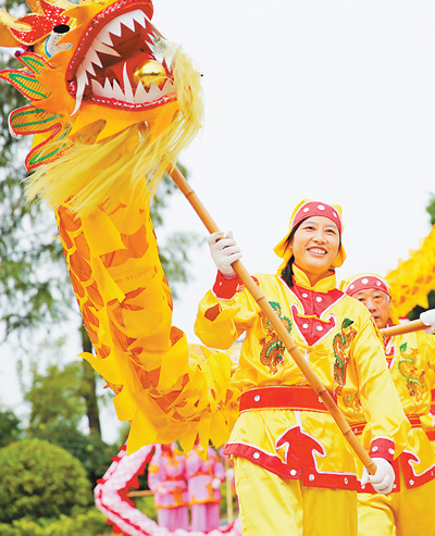 10月4日,舞龍隊(duì)成員在江蘇南通市嗇園進(jìn)行傳統(tǒng)民俗舞龍表演,歡度中秋佳節(jié)。 |