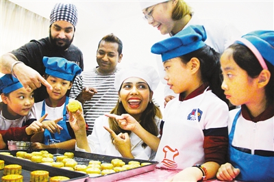 中秋節(jié)之際,河北唐山市豐潤(rùn)區(qū),來(lái)自英國(guó)、印度、孟加拉國(guó)的外教老師與當(dāng)?shù)氐暮⒆觽円黄鹬谱髟嘛,體驗(yàn)中華民族傳統(tǒng)文化。 |