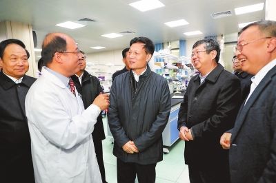 謝伏瞻先后來到河南大學(xué)棉花生物學(xué)國家重點(diǎn)實(shí)驗(yàn)室、抗體藥物開發(fā)技術(shù)國家地方聯(lián)合研究工程實(shí)驗(yàn)室,鄭州大學(xué)綠色催化研究中心、精準(zhǔn)營養(yǎng)研究實(shí)驗(yàn)室等處察看,了解學(xué)科建設(shè)、人才培養(yǎng)、成果轉(zhuǎn)化等情況。