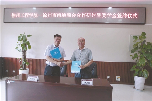 徐州市南通商會(huì)與徐州工程學(xué)院簽訂《戰(zhàn)略合作暨獎(jiǎng)學(xué)金協(xié)議》。