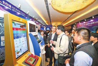 ▶圖為受邀企業(yè)在向參會(huì)代表介紹智能服務(wù)機(jī)器(11月14日攝)。⑨3本報(bào)記者鄧放攝 ▼11月14日,以“建設(shè)數(shù)字河南助力出彩中原”為主題的2018(第五屆)河南省互聯(lián)網(wǎng)大會(huì)開(kāi)幕。⑨3本報(bào)記者鄧放攝