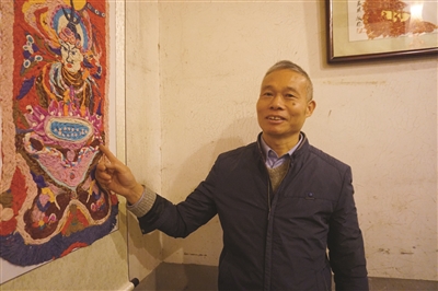 朱琪今年已63歲,自幼跟隨祖母學(xué)藝,至今已有50多年歷史。今年9月,朱琪花10萬(wàn)元重新裝修家宅,共有100平方米,展出捻紙畫(huà)有100多種、臉譜近30個(gè)。記者在現(xiàn)場(chǎng)看到,整個(gè)手造館裝飾為中式風(fēng)格,采用有百年以上歷史的木格窗牖,以及清代石柱礎(chǔ)、古典家具等作為裝飾,燈罩下懸掛著紅色流蘇,整個(gè)展陳古色古香,四壁張掛裝裱好的捻紙畫(huà)和面具,其中有長(zhǎng)1.2米、寬0.6米的正一派道教神像,有較小的火炬道人和財(cái)福喜臉譜等。