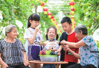 正在“馬龍山生態(tài)農(nóng)業(yè)采摘園”品嘗葡萄的游客